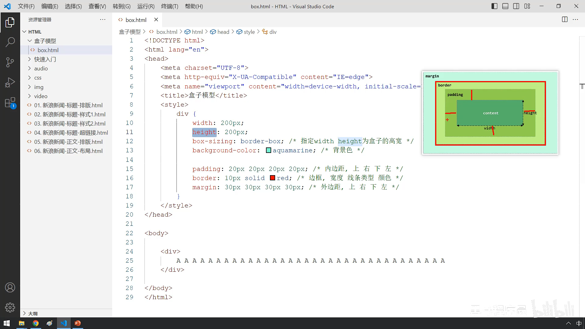 盒子模型标签: 内容区域(content)、内边距区域(padding)、边框区域(border)、外边距区域(margin)