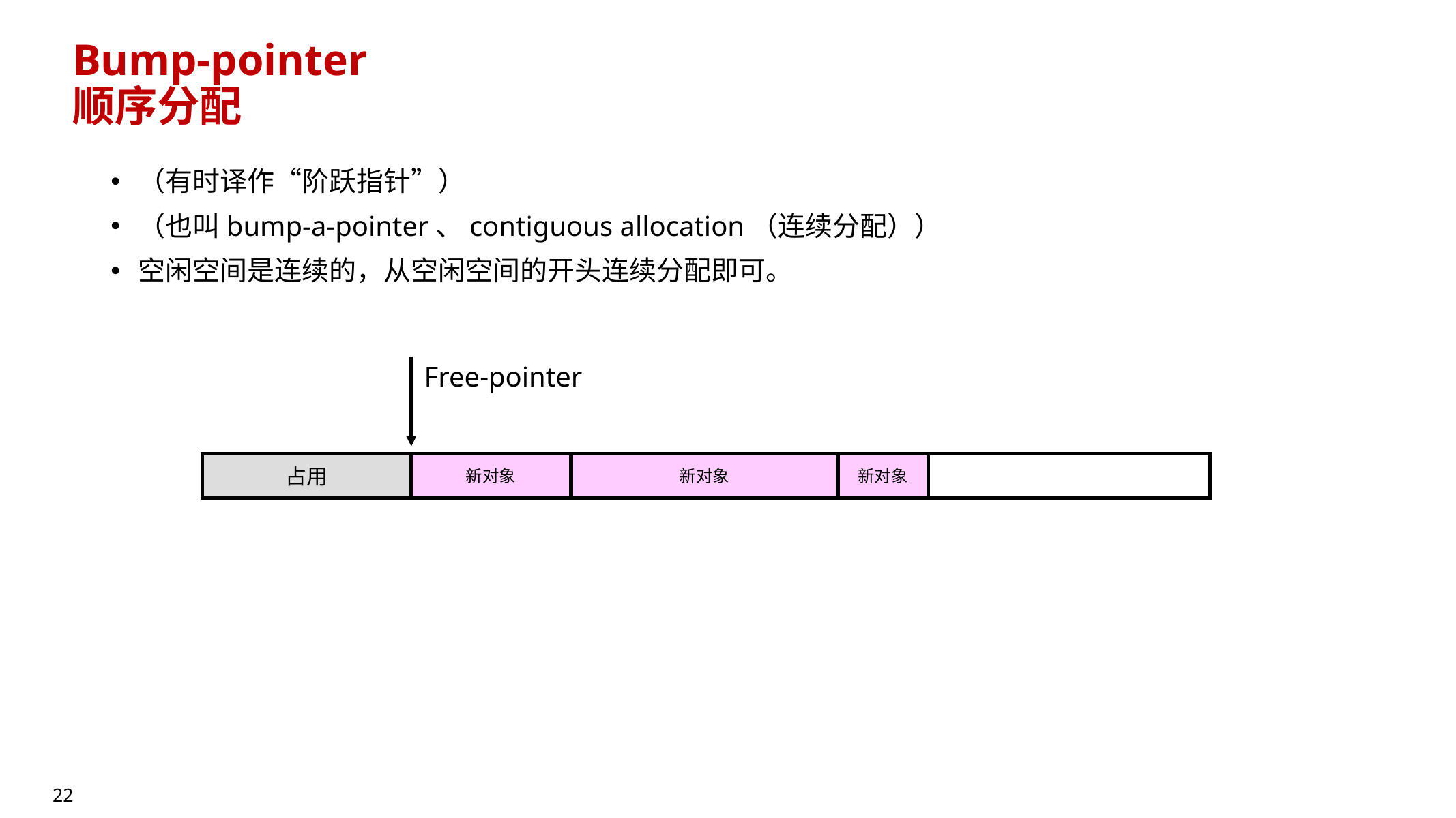 - 在 region 内通过指针跳跃(bump-pointer)分配小对象