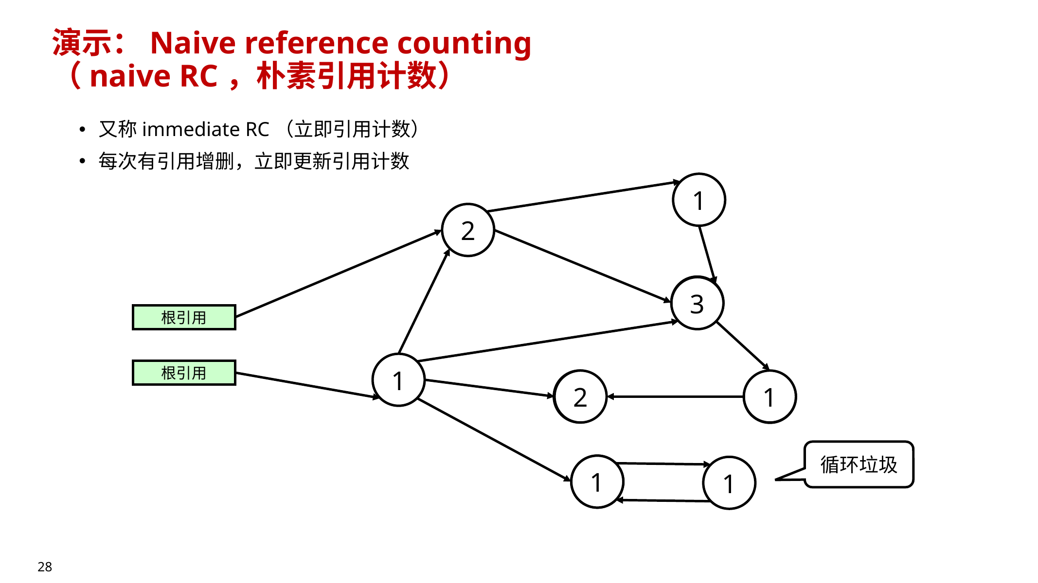 - tracing:能处理环;但若全堆扫描成本大 → 分代