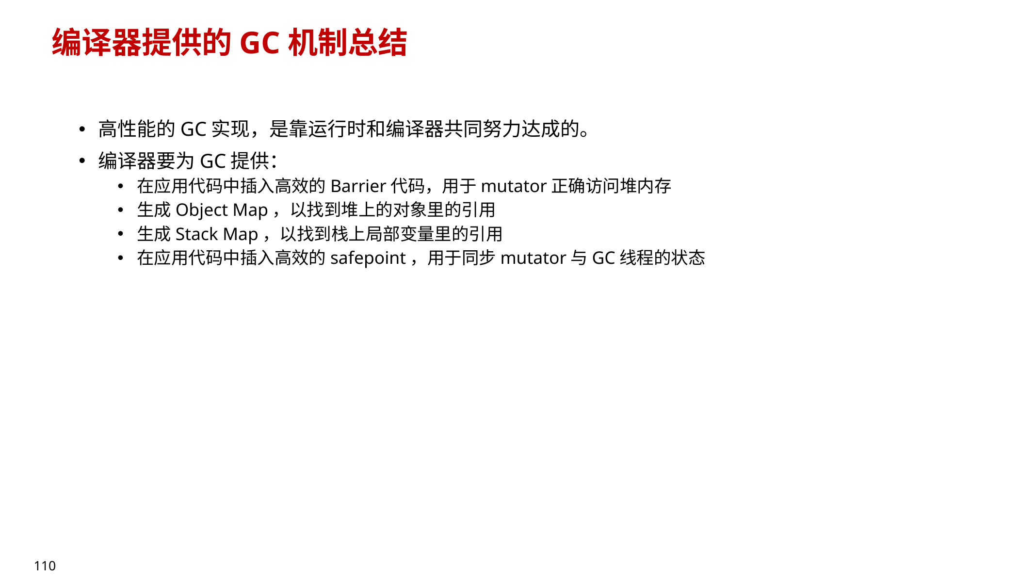 - 编译器/VM 必备支撑:barrier + object map + stack map + safepoint